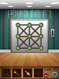 Das nächste Level 2 sieht schon etwas schwerer aus, allerdings nur auf den ersten Blick. In diesem Rätsel müssen die Punkte auf der Tür verbunden werden. Ziehe dazu mit dem Finger die Punkte von oben rechts zur mitte und dann nach links. Betätige anschließend den Hebel neben der Tür und das Level ist geschafft!
