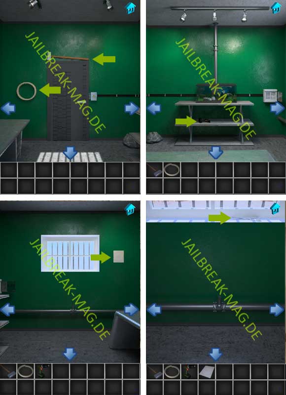Das vorerst letzte Level in diesen Lösungen für 100 Rooms ist Level 42. In Level 42 müssen wieder viele Gegenstände gesucht und kombiniert werden. Fangen wir direkt mit dem ersten Gegenstand an. Direkt über der Tür hängt ein Hammer und links neben der Tür ein Schlauch. Drehe dich einmal nach rechts in den nächsten Abschnitt und nimm den Akkuschrauber aus dem Regal auf. Drehe dich jetzt nochmal nach rechts und klicke auf das Papier links neben dem Fenster. Zoome jetzt noch einmal auf das Rohr unterhalb des Fensters und hebe die Schere von der Fensterbank auf.