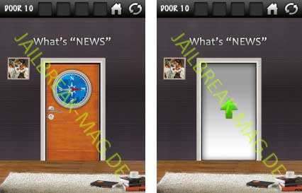 Über der Tür befindet sich der Schriftzug „What’s NEWS“. In diesem Level gilt es darum, das Smartphone in alle Himmelsrichtung nach einer bestimmten Reihenfolge zu drehen, sodass zum Schluss das Wort News rauskommt. Dabei muss folgendes gemacht werden.