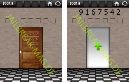 In Level 9 muss ein Code herausgefunden werden, um die Tür öffnen zu können. Der Hinweis dafür befindet sich über der Tür. Über der sind insgesamt 7 Symbole zu sehen, die jewiels auf die Zahl schließen lassen. Dafür muss man sich einfach den Rahmen um der Zahl anschauen mit dem Symbolen vergleichen.