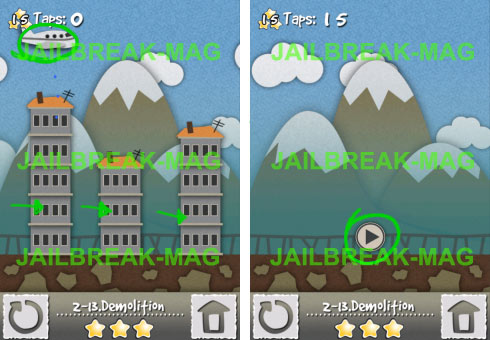 In Level 13 von Tap Play kannst Du in mal in die Rolle eines Bomberpiloten schlüpfen. Mit dem Flugzeugen musst Du so lange Bomben auf die Stadt abwerfen, bis alle Gebäude dem Erdboden gleich gemacht wurden.
