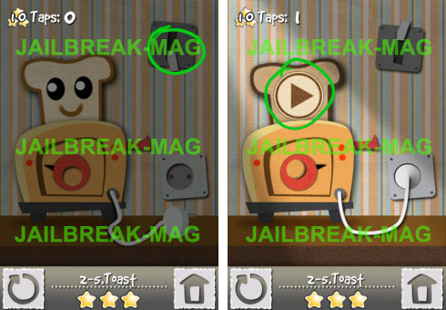 In Level 5 aus Welt 2 siehst Du einen Toaster auf einem Tisch. Um das Level zu lösen musst Du zuerst das Licht über den weißen Schalter abmachen und dann den Timer beim Toaster auf maximal stellen. Die maximale Einstellung erkennst du an den roten Punkten an der rechten Seite. Tippe dann auf den weißen Stecker und stecke diesen in die Steckdose.