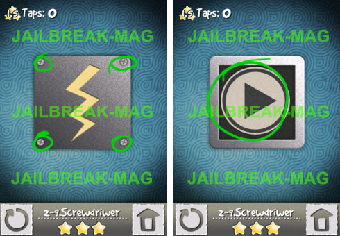 In Level 9 befindet sich ein Kasten mit einem Blitz in der Mitte, der mit vier Schrauben befestigt ist. Entferne die Schrauben mit einem Klikc und es kommt ein durchgewürfteltes Play-Zeichen zum Vorschein. Ordner das Play-Zeichen und schon ist das Level 10 aus Welt 2 erfolgreich bestanden.